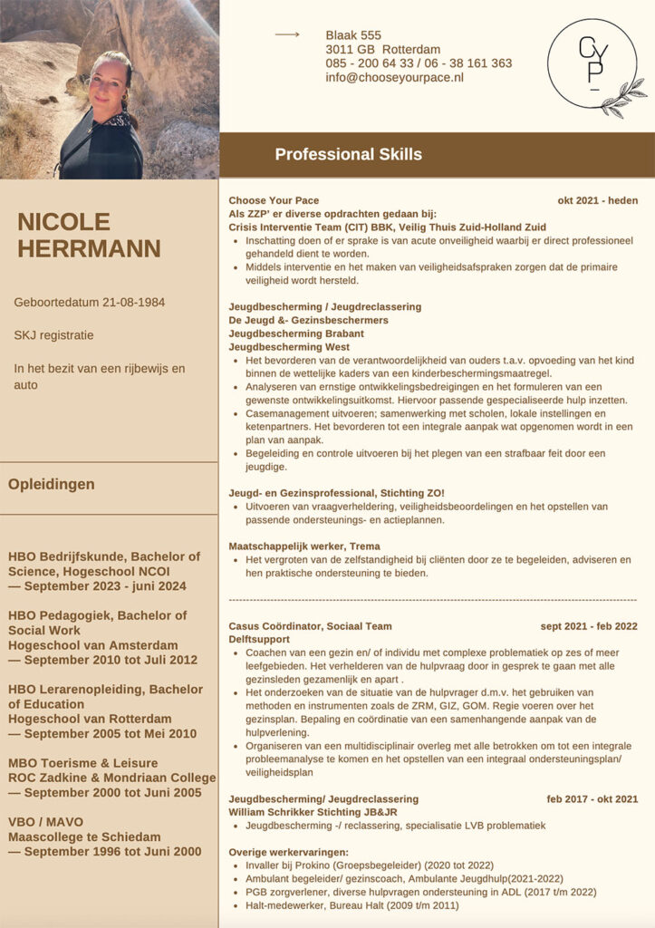 Na mijn opleiding tot leraar aardrijkskunde en biologie ben ik aansluitend de opleiding pedagogiek gaan volgen. Van 2005 t/m heden heb ik afwisselend gewerkt binnen het onderwijs en het sociale domein. In het onderwijs heb ik werkervaring binnen het regulier en speciaal onderwijs. Binnen het sociale domein ben ik werkzaam geweest als HALT-medewerker, jeugdbeschermer, jeugdreclasseringsmedewerker, maatschappelijk werker, invalkracht op verblijfsgroepen voor jongeren en als jeugdprofessional bij wijkteams. Binnen al mijn functies heb ik altijd intensief samengewerkt met ketenpartners binnen het sociale domein.